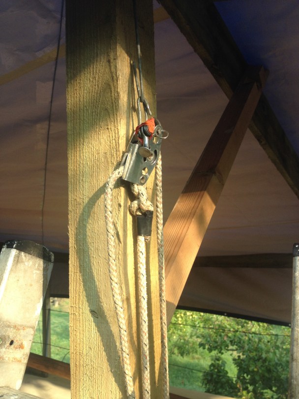 image September 7, 2014 2448 × 3264 Laurent Giles levers and misleading labels. Handy Billy An old kicking strap does sterling service as a makeshift Handy Billy to get some tension on the wire.