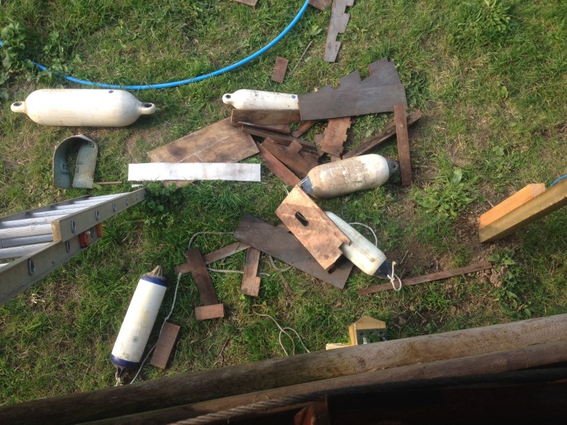 Contents of one locker September 7, 2014 3264 × 2448 Laurent Giles levers and misleading labels. The previous owner didn’t believe in throwing any piece of wood away…. no matter how small.